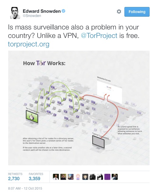 Edward Snowden joined Twitter a few weeks ago — and it didn't take him long to start promoting the Tor Project. So now might be a good time to refresh people's memories and roll out some of the reporting I've done on the Tor Project, an anonymity service that has a cult following among privacy activists.