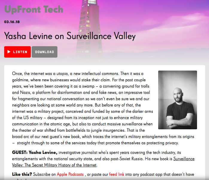 Interview: Yasha Levine on KPFA's UpFront Tech
