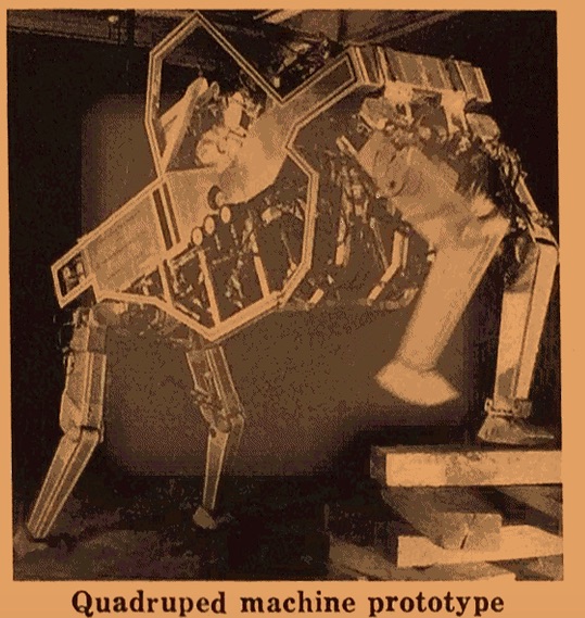 A bit of random war nerd porn from my Surveillance Valley archive research. This one comes courtesy of a taxpayer funded military rag called "Army Research & Development." It shows a rare specimen: a 1969 vintage Pentagon Quadruped Hotrod. Kinda looks like Google's Cheetah Drone, which as it happens was developed with Pentagon funding but is now controlled by Google.