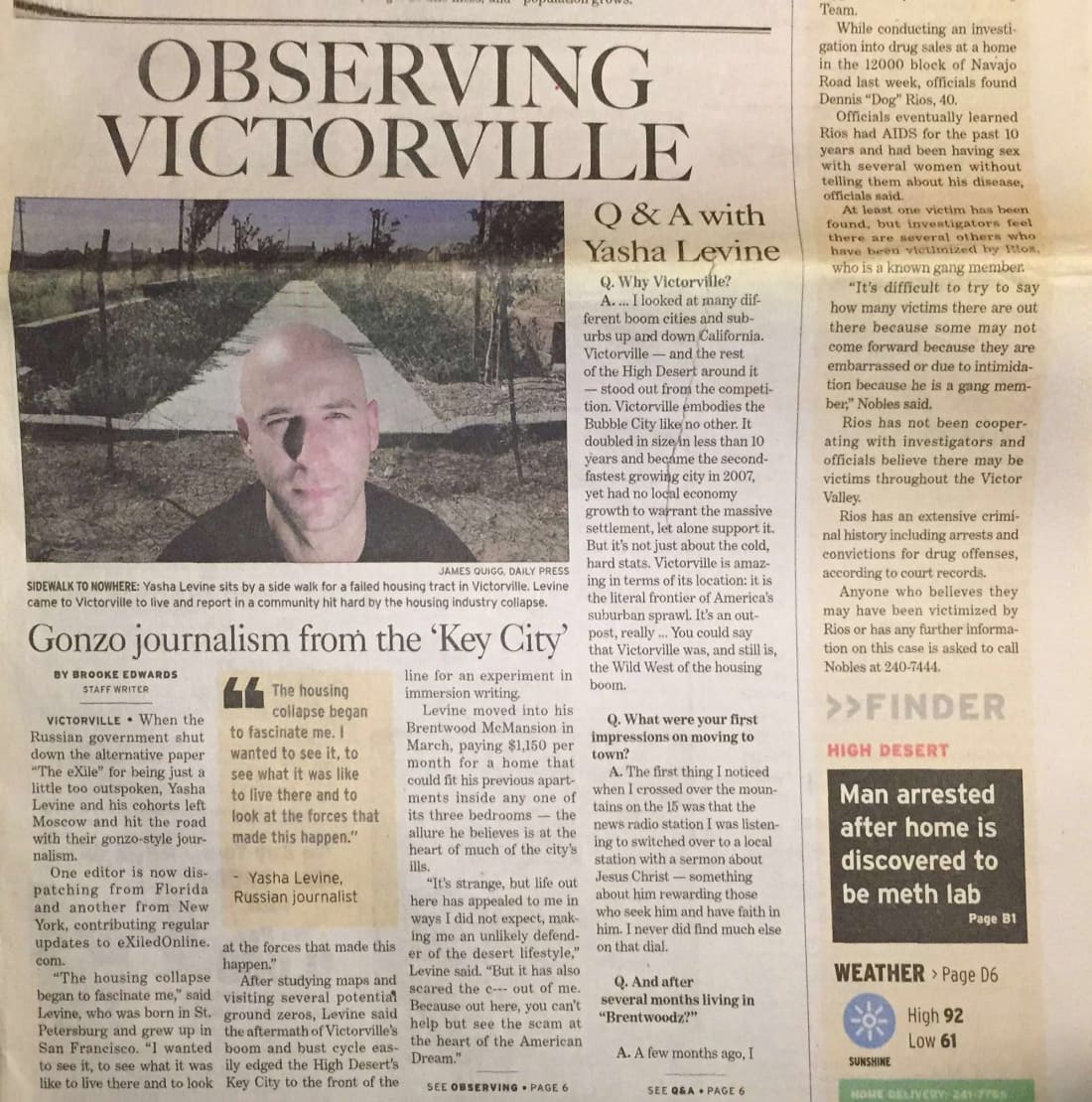 Victorville was as pure a specimen of a bubble city as I could find — a city of cheaply constructed “master-planned” communities built to feed Wall Street’s insatiable demand for high-risk mortgage backed derivatives. It was city constructed on speculation and fraud at the highest levels of our society.