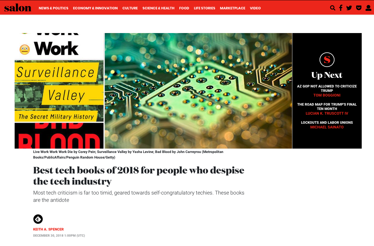 Salon names Surveillance Valley one of the best tech books of 2018