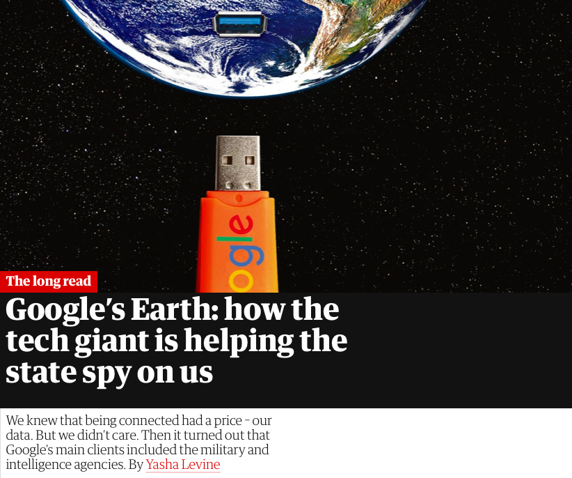 The Guardian just published an excerpt from Surveillance Valley in its "long read" section. In it, I examine the rise of Google and look at the company's close collaboration with America's national security apparatus — a relationship that goes back nearly two decades.