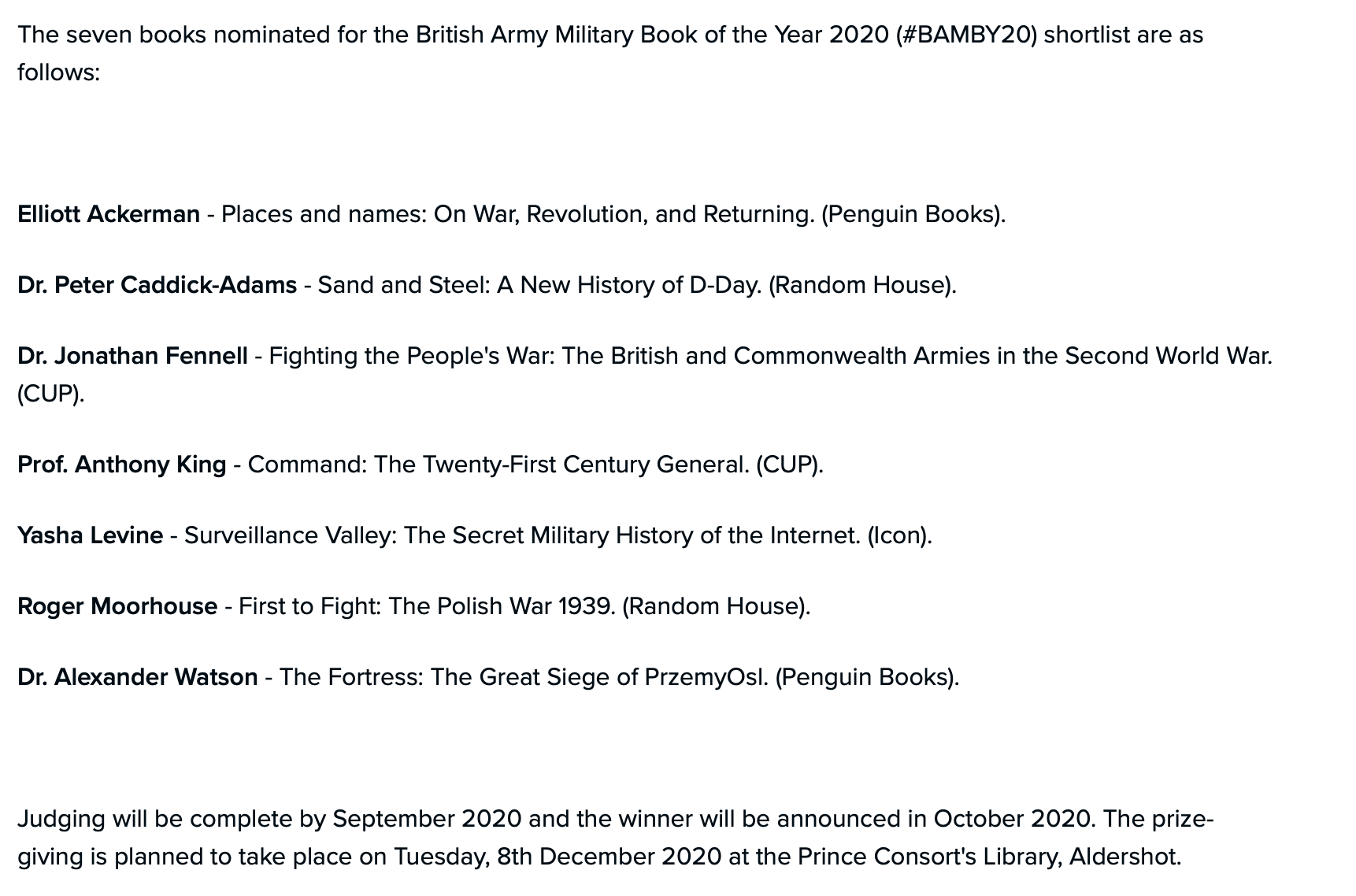 Got some nice professional news: just found out that the UK edition of Surveillance Valley is on the shortlist for the British Army Military Book of the Year. Apparently the winner will be announced later this year — sometime in October.